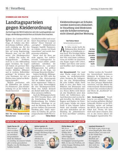 Auf Anfrage der NEUE äußerten sich die Landtagsklubs zur Frage, ob Kleidungsvorschrften an Schulen Sinn machen.