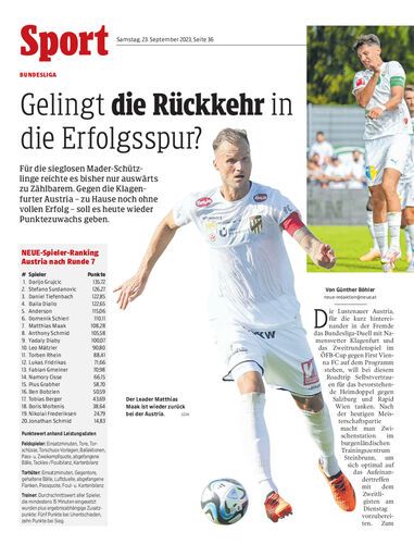 Für die sieglosen Mader-Schützlinge reichte es bisher nur auswärts zu Zählbarem. Gegen die Klagenfurter Austria – zu Hause noch ohne vollen Erfolg – soll es heute wieder Punktezuwachs geben.