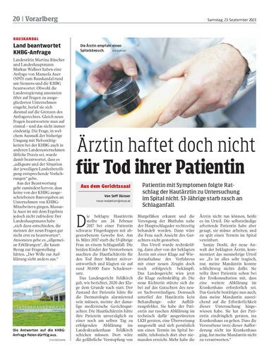 Patientin mit Symptomen folgte Ratschlag der Hautärztin zu Untersuchung im Spital nicht. 53-Jährige starb rasch an Schlaganfall.
