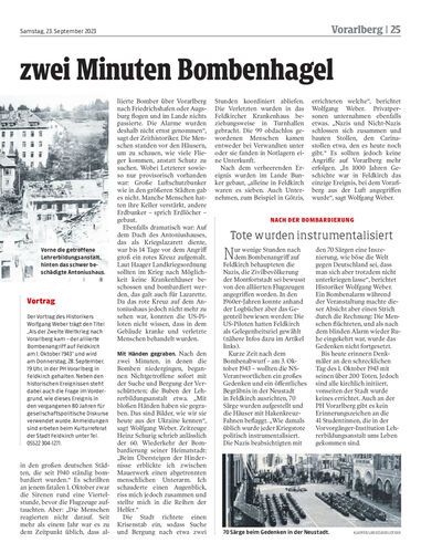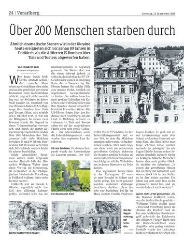 Ähnlich dramatische Szenen wie in der Ukraine heute ereigneten sich vor genau 80 Jahren in Feldkirch, als die Alliierten 15 Bomben über Tisis und Tosters abgeworfen haben.