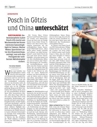 Hintergrund. Siebenkämpferin Isabel Posch (23) startet am Wochenende bei ihrem nächsten Saisonhighlight in Talence. Walter Weber, Sportlicher Leiter des Hypomeetings, verfolgt, wer sich das Preisgeld der weltbesten Mehrkämpfer sichert.