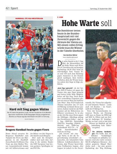 Die Dornbirner treten heute in der Bundeshauptstadt mit viel Zuversicht gegen die Akteure der Vienna an. Mit einem vollen Erfolg würde man die Wiener in der Tabelle überholen.