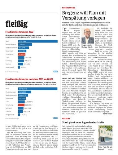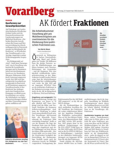Die Arbeiterkammer Vorarlberg gibt pro Wahlberechtigtem am zweitmeisten für die Förderung ihrer politischen Fraktionen aus.