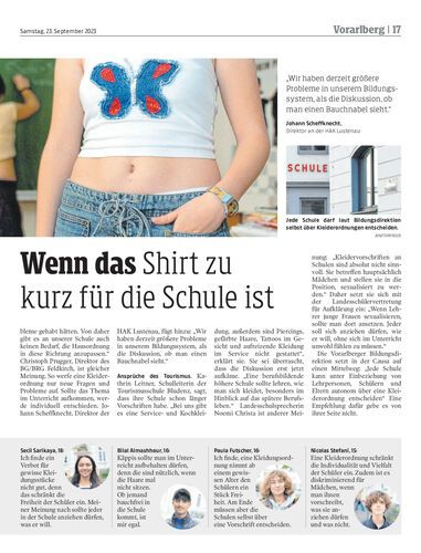 Kleiderordnungen an Schulen werden kontrovers diskutiert. In Vorarlberg sind Direktoren und die Schülervertretung nicht überall gleicher Meinung.