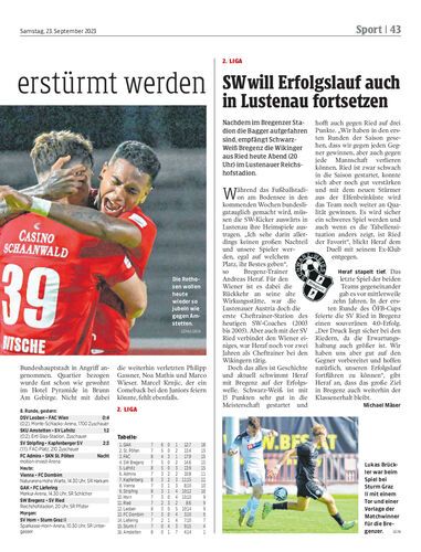 Nachdem im Bregenzer Stadion die Bagger aufgefahren sind, empfängt Schwarz-Weiß Bregenz die Wikinger aus Ried heute Abend (20 Uhr) im Lustenauer Reichshofstadion.