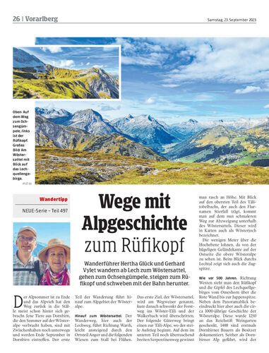 Wanderführer Hertha Glück und Gerhard Vylet wandern ab Lech zum Wöstersattel, gehen zum Ochsengümpele, steigen zum Rüfikopf und schweben mit der Bahn herunter.
