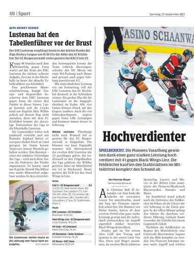 Der EHC Lustenau empfängt heute in der dritten Runde der Alps Hockey League um 19.30 Uhr die Adler des EC Kitzbühel. Der EC Bregenzerwald verlor gestern bei KAC II mit 2:5.