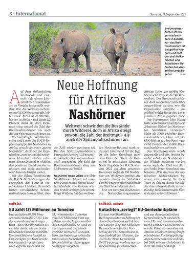 Weltweit schwinden die Bestände durch Wilderei, doch in Afrika stieg sowohl die Zahl der Breitmaul- als auch die Spitzmaulnashörner an.