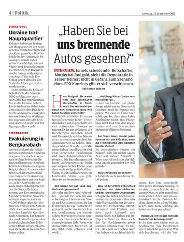 Israels scheidender Botschafter, Mordechai Rodgold, sieht die Demokratie in seiner Heimat nicht in Gefahr. Zum Szenario eines FPÖ-Kanzlers gibt er sich verschlossen. Von Stefan Winkler