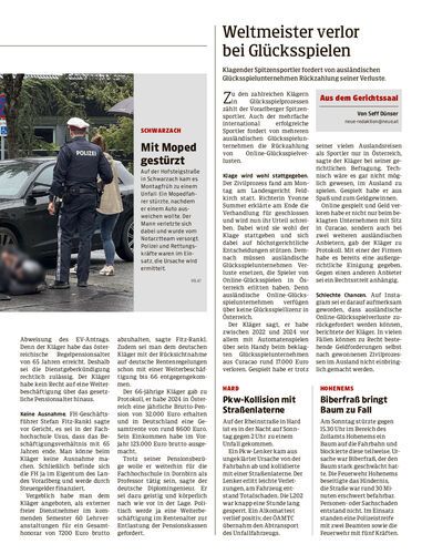 Klagender Spitzensportler fordert von ausländischen Glücksspielunternehmen Rückzahlung seiner Verluste.