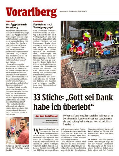 Vorbestrafter Somalier stach im Vollrausch in Dornbirn mit Stanleymesser auf Landsmann ein und schlug bei anderem Vorfall mit Glasflasche zu.