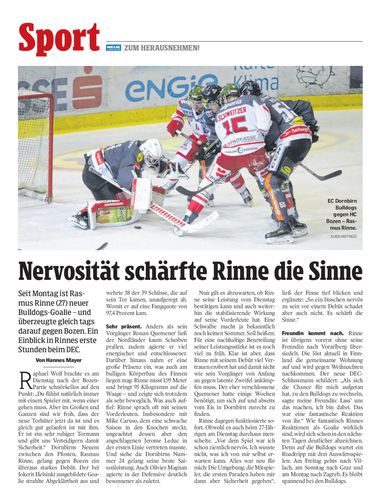 Seit Montag ist Rasmus Rinne (27) neuer Bulldogs-Goalie – und überzeugte gleich tags darauf gegen Bozen. Ein Einblick in Rinnes erste Stunden beim DEC.