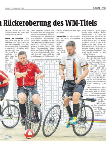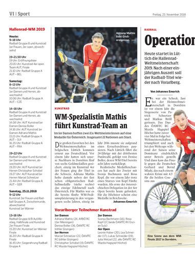 Heute startet in Lüttich die Hallenrad-Weltmeisterschaft 2019. Nach einer einjährigen Auszeit soll der Radball-Titel wieder nach Vorarlberg.