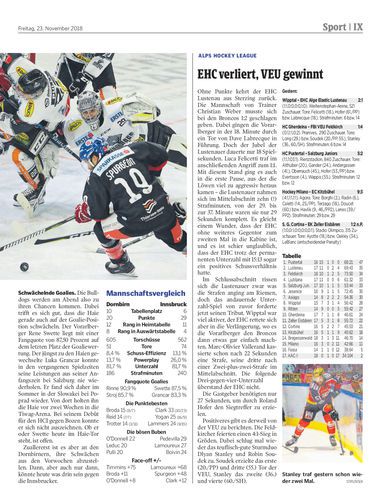 Im Schlussabschnitt rissen sich die Lustenauer zwar was die Strafen anging am Riemen, doch das andauernde Unterzahl-Spiel von zuvor forderte jetzt seinen Tribut. Wipptal war viel aktiver, der EHC rettete sich aber in die Verlängerung, wo es die Vorarlberger den Broncos dann etwas gar einfach machten. Marc-Olivier Vallerand kassierte schon nach 22 Sekunden eine Strafe, seine dritte nach einer Zwei-plus-zwei-Strafe im Mittelabschnitt. Die folgende Drei-gegen-vier-Unterzahl überstand der EHC nicht.