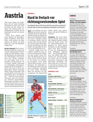 Der Alpla HC Hard trifft heute (19 Uhr) auswärts auf dem SC Ferlach. Mut macht ein mögliches Comeback von Schmid.