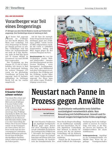 27-Jähriger aus dem Bezirk Bludenz wurde auf freiem Fuß angezeigt. Drei Verdächtige sitzen in Salzburg in Haft.