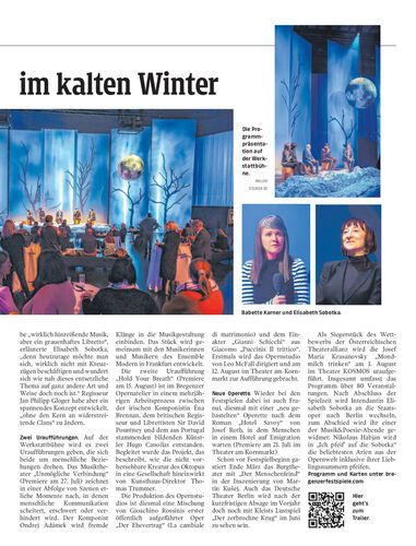 Die Bregenzer Festspiele haben gestern das Programm für die nächste Saison von 17. Juli bis 18. August auf der Werkstattbühne präsentiert.