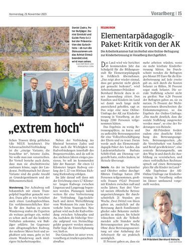 Die Arbeiterkammer hat im Herbst eine Online-Befragung zur Kinderbetreuung in Vorarlberg durchgeführt.