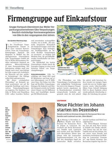 Gruppe Rattpack übernimmt das Weiler Verpackungsunternehmen Giko Verpackungen. Deutlich rückläufige Vorsteuerergebnisse von Giko in den vergangenen drei Jahren.