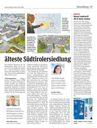 Vogewosi und Stadt Bregenz legen Masterplan für Siedlung an der Bregenzer Rheinstraße vor. Anlage soll größtenteils abgerissen und durch zeitgemäße gemeinnützige Neubauten ersetzt werden.