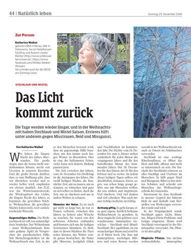 Die Tage werden wieder länger, und in der Weihnachtszeit haben Stechlaub und Mistel Saison. Ersteres hilft unter anderem gegen Misstrauen, Neid und Missgunst.