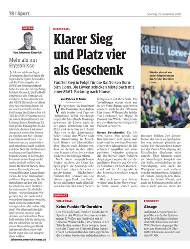 Fünfter Sieg in Folge für die Raiffeisen Dornbirn Lions. Die Löwen schicken Mistelbach mit einer 85:63-Packung nach Hause.