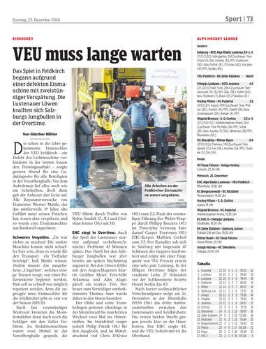 Das Spiel in Feldkirch begann aufgrund einer defekten Eismaschine mit zweistündiger Verspätung. Die Lustenauer Löwen krallten sich Salzburgs Jungbullen in der Overtime.