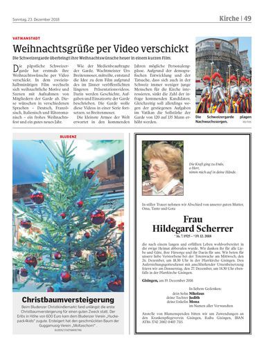Die Schweizergarde überbringt ihre Weihnachtswünsche heuer in einem kurzen Film.
