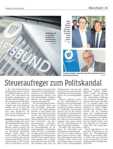 Der Wirtschaftsbund Vorarlberg gerät ins Visier der Finanz und der Staatsanwaltschaft.