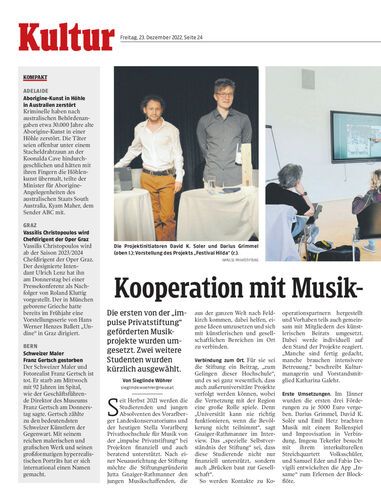 Die ersten von der „impulse Privatstiftung“ geförderten Musikprojekte wurden umgesetzt. Zwei weitere Studenten wurden kürzlich ausgewählt.