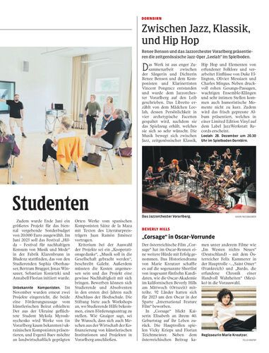 Renee Benson und das Jazzorchester Vorarlberg präsentieren die zeitgenössische Jazz-Oper „Leelah“ im Spielboden.