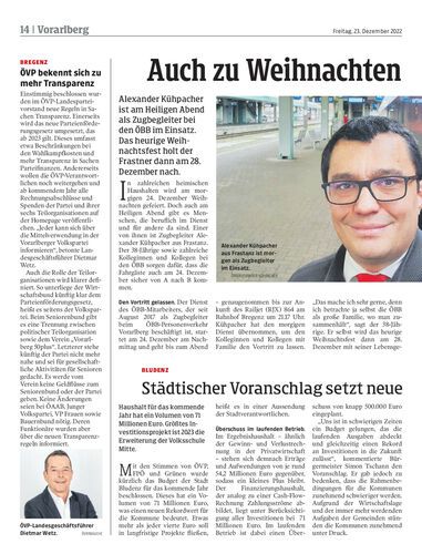 Alexander Kühpacher ist am Heiligen Abend als Zugbegleiter bei den ÖBB im Einsatz. Das heurige Weihnachtsfest holt der Frastner dann am 28. Dezember nach.