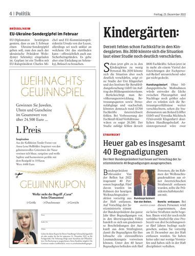 Der Herr Bundespräsident hat heuer auf Vorschlag der Justizministerin 40 Begnadigungen ausgesprochen.