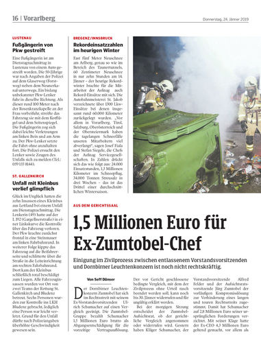 Einigung im Zivilprozess zwischen entlassenem Vorstandsvorsitzenden und Dornbirner Leuchtenkonzern ist noch nicht rechtskräftig.