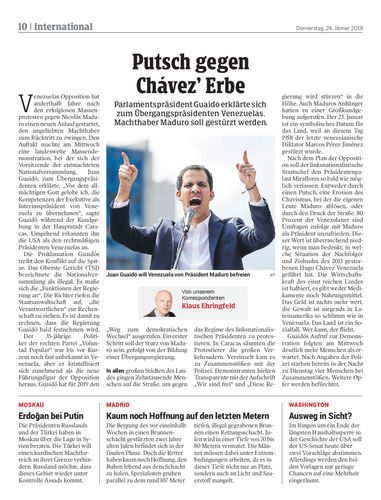 Parlamentspräsident Guaidó erklärte sich zum Übergangspräsidenten Venezuelas. Machthaber Maduro soll gestürzt werden.