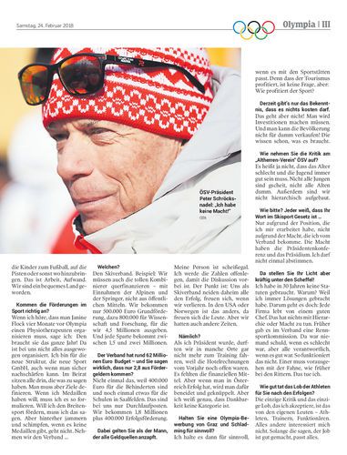 Interview. ÖSV-Präsident Peter Schröcksnadel im Exklusiv-Interview über Olympia in Pyeongchang, seine Macht, Hierarchien im Verband, Geld und staatliche Förderungen sowie die Problemzonen bei den Springern. Von Michael Schuen und Michael Smejkal