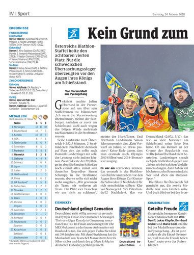 Österreichs Biathlon-Staffel holte den achtbaren vierten Platz. Nur die schwedischen Überraschungssieger überzeugten vor den Augen ihres Königs am Schießstand.