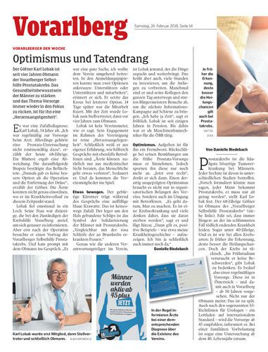 Der Göfner Karl Lobak ist seit vier Jahren Obmann der Vorarlberger Selbsthilfe Prostatakrebs. Das Gesundheitsbewusstsein der Männer zu stärken und das Thema Vorsorge immer wieder in den Fokus zu rücken, ist für ihn eine „Herzensangelgenheit“.
