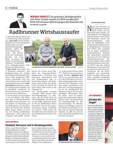 wiener PARKETT. Im genialen Streitgespräch mit Peter Turrini wartet Ex-ÖVP-Landeschef Pröll mit ein paar Spitzen gegen den Kanzler auf. Von Michael Jungwirth