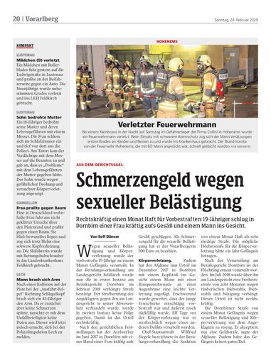 Rechtskräftig einen Monat Haft für Vorbestraften: 19-Jähriger schlug in Dornbirn einer Frau kräftig aufs Gesäß und einem Mann ins Gesicht.
