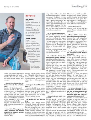 Interview. Nina Leopold (34) und Thomas Bechter (43) sind die neuen Sexualpädagogen des Landes. Sie sprechen über die Diskussionen der letzten Monate, altersadäquate und kindgerechte Methoden und darüber, dass Sexualpraktiken und Verhütungsmittel in der Volksschule nicht besprochen werden.