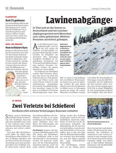 In Tirol und an der Grenze zu Deutschland sind bei Lawinenabgängen gestern zwei Menschen ums Leben gekommen. Mehrere Personen unverletzt geborgen.