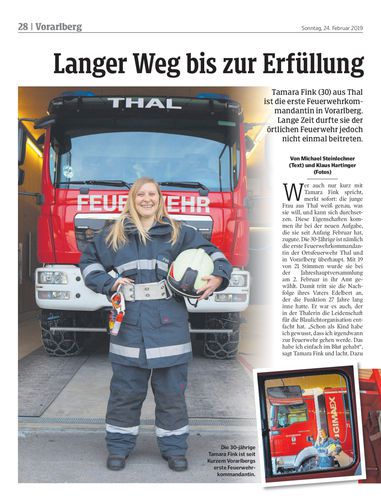 Tamara Fink (30) aus Thal ist die erste Feuerwehrkommandantin in Vorarlberg. Lange Zeit durfte sie der örtlichen Feuerwehr jedoch nicht einmal beitreten.