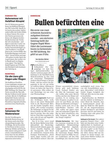 Die erste von zwei schweren Auswärtsaufgaben hintereinander – am nächsten Sonntag heißt der Gegner Rapid Wien – führt die Lustenauer heute zu Serienmeister RB Salzburg. Anpfiff ist um 17 Uhr.