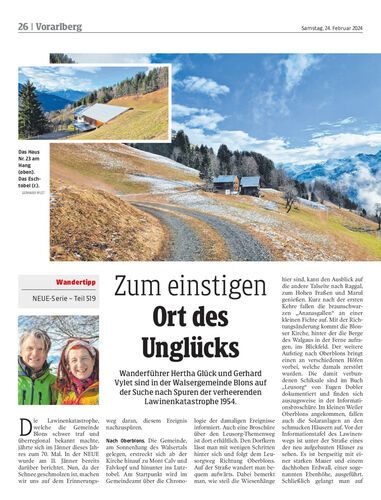 Wanderführer Hertha Glück und Gerhard Vylet sind in der Walsergemeinde Blons auf der Suche nach Spuren der verheerenden Lawinenkatastrophe 1954.