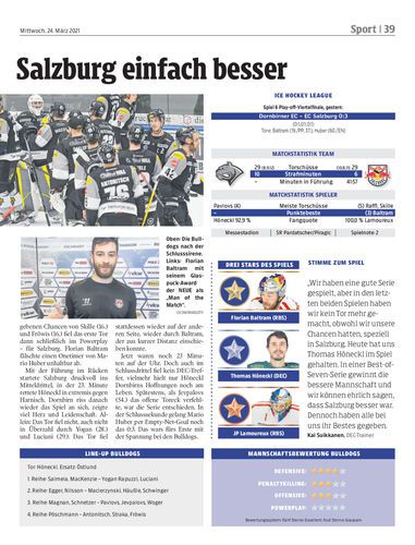 Spielbericht. Saisonaus für den DEC, der zu Hause mit 0:3 gegen Salzburg verliert und somit in der Serie 2:4 unterliegt.