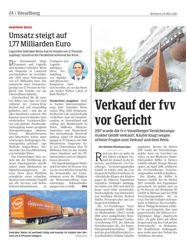 2017 wurde die fvv-Vorarlberger Versicherungsmakler GmbH verkauft. Käufer klagt wegen offener Fragen zum Verkauf und dem Preis.