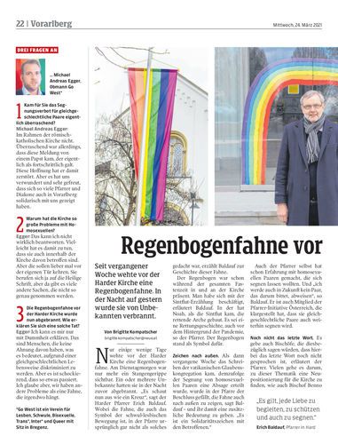 Seit vergangener Woche wehte vor der Harder Kirche eine Regenbogenfahne. In der Nacht auf gestern wurde sie von Unbekannten verbrannt.