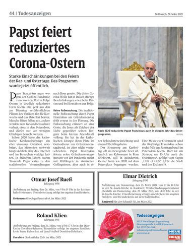 Starke Einschränkungen bei den Feiern der Kar- und Ostertage. Das Programm wurde jetzt öffentlich.