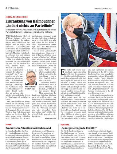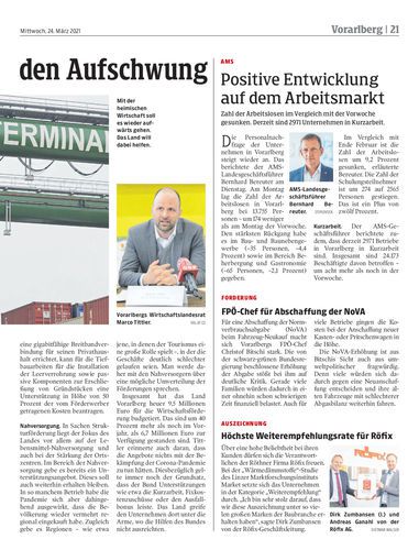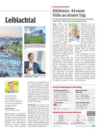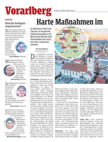 leiblachtal. Massiver Anstieg an Infektionszahlen mit einem hohen Anteil an der britischen Mutation. Ab heute, 24 Uhr, gilt Ausreisetestpflicht in fünf Gemeinden - auch um die Modellregion nicht zu gefährden. Seiten 16/17 Hartinger